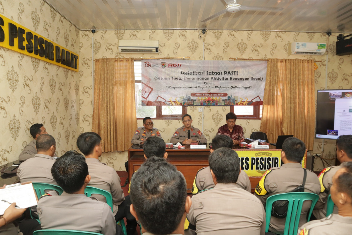 Polres Pesisir Barat menerima kunjungan kerja dari Dit Binmas Polda Lampung sosialisasi Satgas PASTI (Satuan Tugas Penanganan Aktivitas Keuangan Ilegal) dengan tema “Waspada Investasi Ilegal dan Pinjaman Online Ilegal” Di ruang vicon Polres Pesisir barat. Kamis (06/06/2924).
