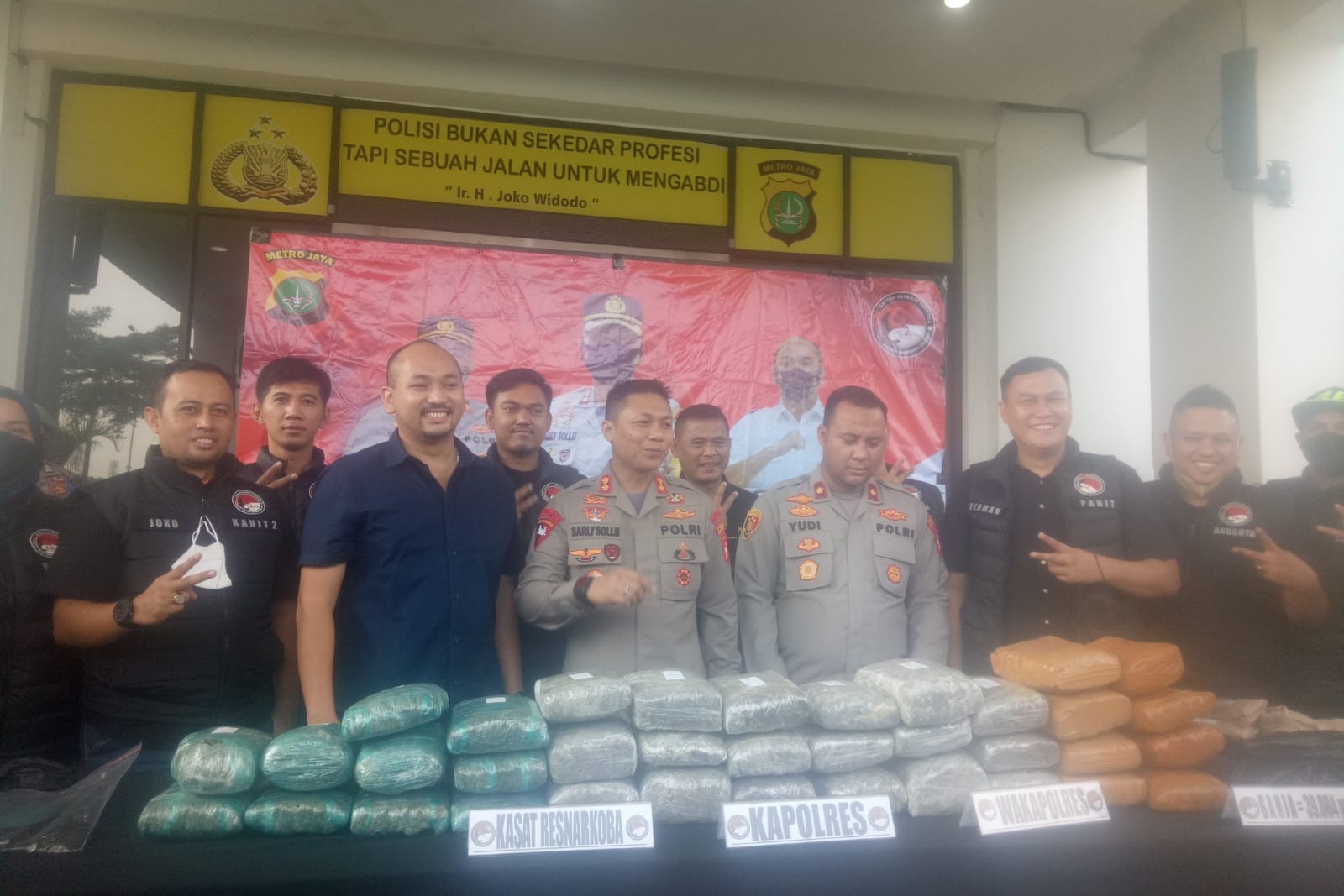 Unit 2 Sat Narkoba Polres Tangerang Selatan di bawah pimpinan Kasat Narkoba beserta Kanit 2 telah mengamankan tersangka JI, AD, BM, dan FS dengan barang bukti ganja 39.084 gram ( ± 39 Kg) terdiri dari 36 (tiga puluh enam) balok ganja dengan berat bruto 34.968 gram dan 91 (sembilan puluh satu) bungkus ganja siap edar berat bruto 4.116 gram.
