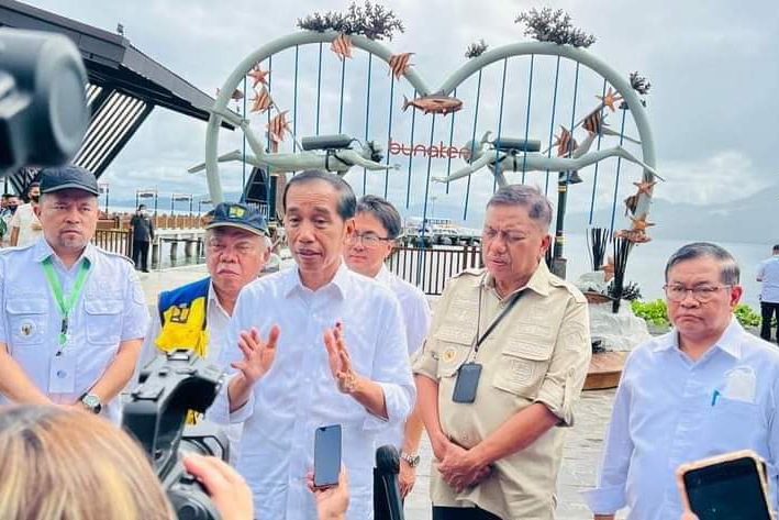 Presiden Joko Widodo meninjau Kawasan Wisata Bunaken, Kota Manado, Provinsi Sulawesi Utara, pada Jumat, 20 Januari 2023. Presiden menyebut bahwa pemerintah membuka kawasan wisata untuk wisatawan mancanegara (wisman) dari berbagai negara dan optimistis mereka akan berbondong-bondong datang ke Sulawesi Utara pada awal Februari 2023.