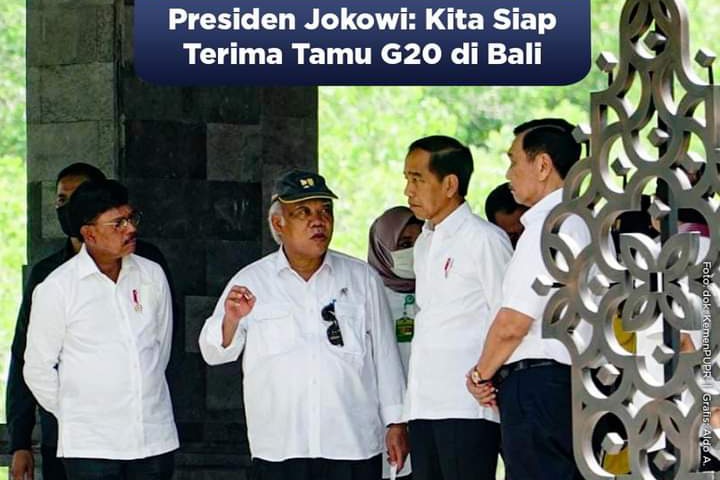 “Sekarang sudah H-7, saya sudah cek dari pagi sampai titik-titik yang paling kecil. Saya ingin mengatakan kita sudah siap menerima tamu-tamu G20,” kata Presiden Jokowi.