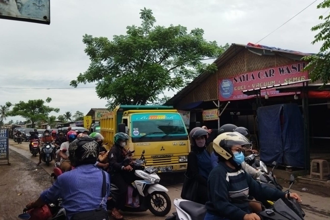 Sementara dower panggilannya , mengatakan kepada awak media saya pun buka usaha bengkel, karena macet kaya gini , jadi menurun bang, ujarnya.
